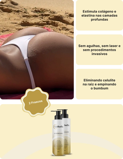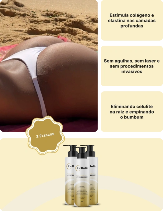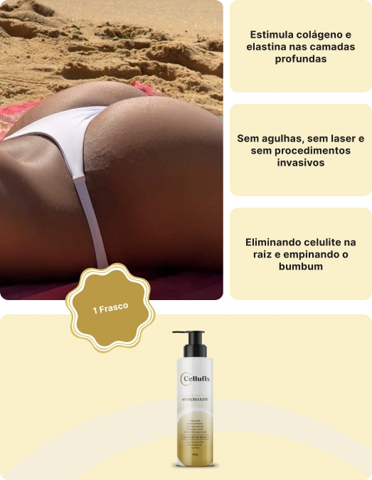 O CelluFix foi formulado para atuar nesse nível profundo da pele e resolver o problema em sua origem, na causa raiz, tendo ativos como a L-Carnitina, que penetra na hipoderme e ajuda a reduzir a adiposidade, além de estimular a produção de colágeno e elastina.
